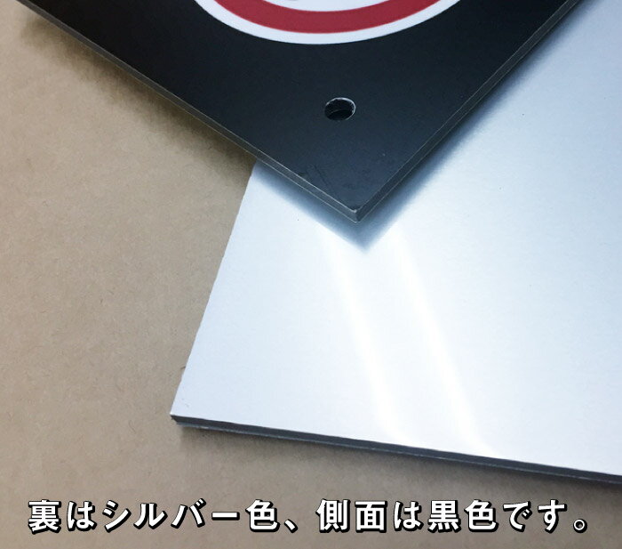 マットな質感でオシャレに掲示!屋外用看板 マンション、アパート、店舗等、景観を壊さずしっかり注意喚起! ■商品内容 ──────────────────────── サイズ :H20×W20cm 材 質 :3ミリシルバーアルミ複合板使用(屋外対応 耐水性◎) 表示面:屋外用インクジェットシート+UVマットラミ 穴加工無料 穴径5mm取付用穴4ヶ所 ──────────────────────── H10×W40cmはこちら H15×W60cmはこちら全体サイズ 縦20cm×横20cm 本体材質 3mmシルバーアルミ複合板 屋外広告で最も多く使用されている耐水性に優れた材質です。