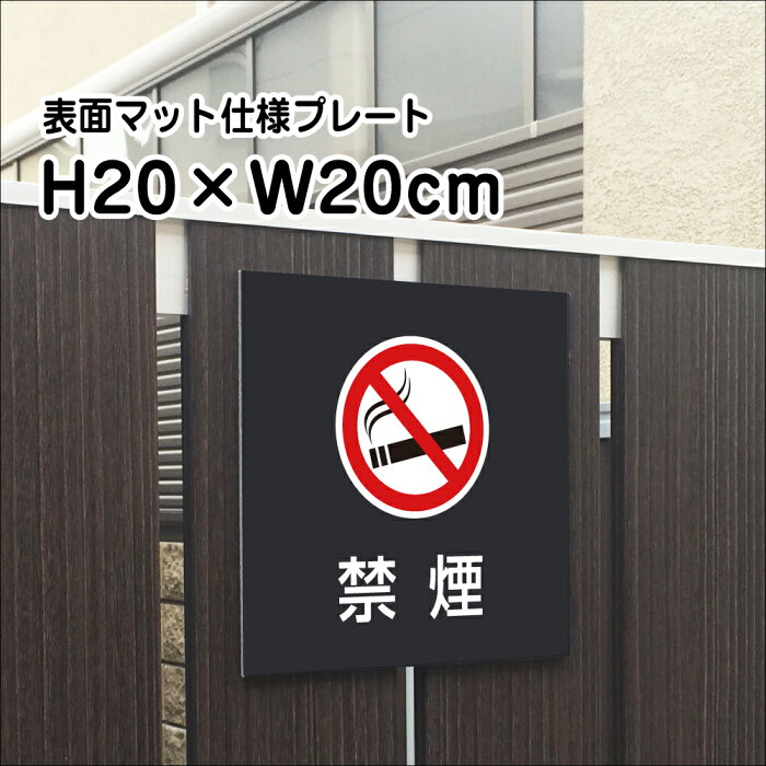 禁煙 プレート 看板【マットブラック】H20×W20cm/お洒落 黒 看板/店内標識や室内プレートにも! bla20-18