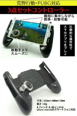 高感応式連射ボタンに無料でグレードアップ中!!■商品名荒野行動・PUBGコントローラー3点セット■商品説明ドン勝率大幅UP!!戦績も驚くほど上がります!!さらに!!1000セット完売記念で只今数量限定高感応式連射ボタンに無料でグレードアップ中!!販売予定数量に達すると無料グレードアップは終了しますのでお早めのご購入をお勧めします。