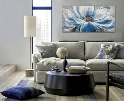 絵画 北欧 NORDIC FLOWER LOTUS インテリア 壁掛け 壁 飾り アートパネル 絵 花 自然 風景 リビング 玄関 ベッドルーム ホテル モダン 洋風 青 緑 蓮