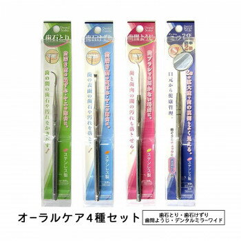 【代引料無料】ステンレス製 オーラルケア4種(歯石とり、歯石けずり、歯間ようじ、デンタルミラーワイド)×各1本セット